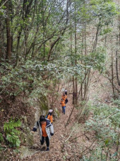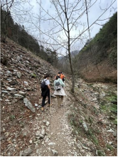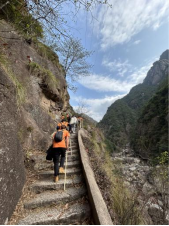 同志們沿著幽長狹窄的古道蜿蜒向上,一路途經江南第一關、徽杭鎖鑰、摩崖石刻、逍遙谷、藍天凹等自然美景和歷史遺存,感受徽商“過山又過嶺,一腳到杭州”堅忍不拔的創業精神,深刻感悟“綠水青山就是金山銀山”的思想精髓和鄉村振興戰略的偉大意義。