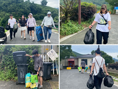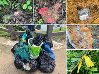 垃圾,雖然天氣炎熱,梅雨季的山路也更加難走,但是大家熱情高漲,干勁十足。短短一個小時,就拾得垃圾二十余袋。