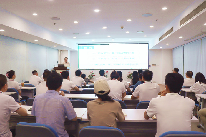 為深入學(xué)習(xí)貫徹黨的歷史,進(jìn)一步增強(qiáng)黨員干部的歷史使命感和責(zé)任感,鯤鵬控股集團(tuán)黨委于7月12日舉辦了一場(chǎng)以新中國(guó)史為主題的專題黨課,并緊隨其后組織了一場(chǎng)黨的理論知識(shí)考試。本次黨課特邀中共杭州市委黨校資深教授陳婭飛主講,她以《牢牢把握新中國(guó)史發(fā)展的主題和主線、主流和本質(zhì)》為題,為控股集團(tuán)一、二號(hào)令干部及全體黨員帶來了一場(chǎng)深刻的歷史教育與思想洗禮。