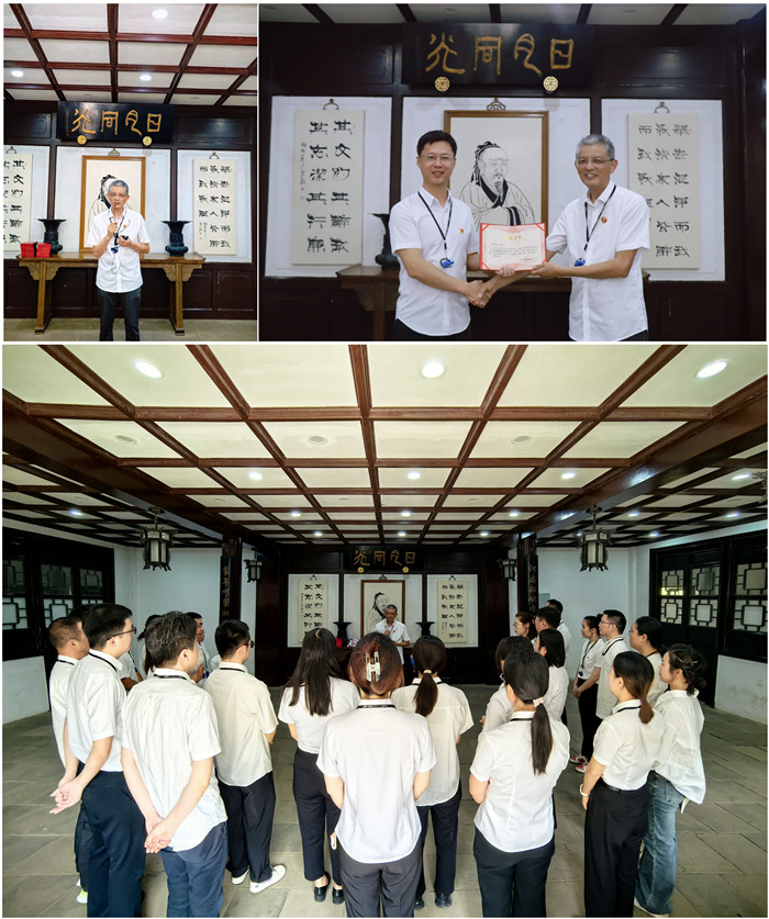 這段研學(xué)之旅,從《大學(xué)》之道載“修身、齊家、治國、平天下”這幾個方面談?wù)勛约旱母形颉J紫仁俏溲b自己的知識體系,持續(xù)提升自己的認(rèn)知、德行、修養(yǎng),才能夠抵御外來的影響做到“立長志”。知識積累要和實踐相結(jié)合,也就是知行合一,在實踐當(dāng)中不斷糾偏,不斷提升,吸引和感召自己志同道合的人;其次是“齊家”,幾代人的鞏固和經(jīng)驗形成家風(fēng)傳承。啟示到今人,要自我審視,定長遠(yuǎn)的目標(biāo),要給人生做規(guī)劃,不止步粗淺的快樂。最后的治國平天下,略去古人不表。今天社會化的人,在組織里做貢獻(xiàn),不能耽于人情世故,鉆營職場規(guī)則…要給下一代樹立榜樣。說話做事的出發(fā)點是對企業(yè)經(jīng)營有利,對企業(yè)發(fā)展有益。讓“良幣驅(qū)逐劣幣”,保證背后的長治久安。