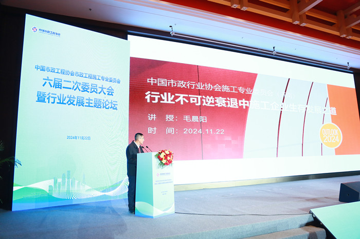 11月22日,中國市政工程協會市政工程施工專業委員會六屆二次委員大會暨行業發展主題論壇在濟南召開。大會聚焦市政工程和建筑施工,匯集學術界、產業界等多方智慧與力量,共同為市政行業的未來發展把脈定向,推動行業持續繁榮與進步。中國市政工程協會盧英方會長以及來自全國各地的專委會委員單位代表到場參會,鯤鵬控股集團董事長毛晨陽受邀參加了此次會議并作專題講座。