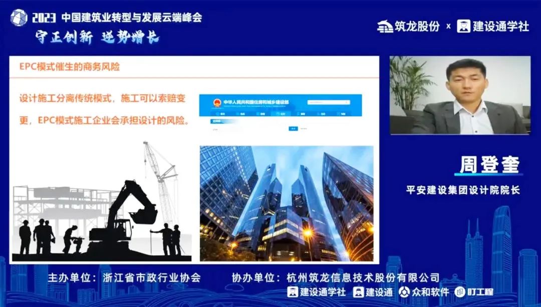 平安建設(shè)集團設(shè)計院院長周登奎強調(diào)施工企業(yè)與設(shè)計院聯(lián)動的核心是利益收益共享。
