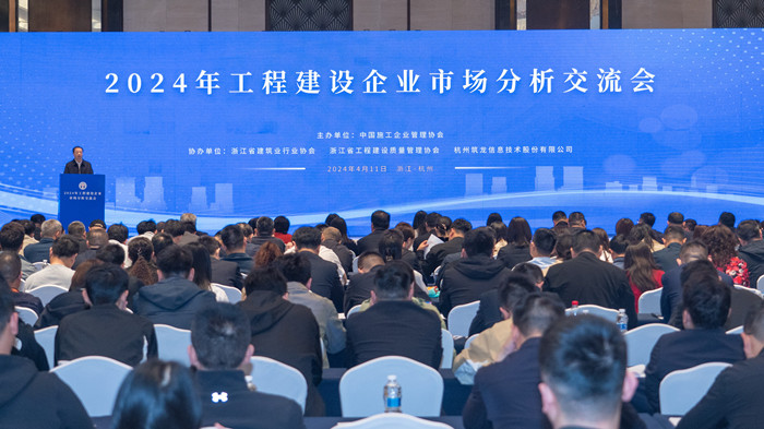 4月11日,由中國施工企業管理協會(以下簡稱:中施企協)主辦,浙江省建筑行業協會、浙江省工程建設質量管理協會、杭州筑龍信息技術股份有限公司(以下簡稱:筑龍股份)協辦的“2024年工程建設企業市場分析交流會”在杭州隆重召開。本次大會聚焦經濟大環境,圍繞行業發展趨勢、區域市場機會、企業經營管理、市場經營數字化等方向,攜手行業專家共探工程建設企業高質量可持續發展之路。中國施工企業管理協會副會長兼秘書長尚潤濤出席會議并講話,浙江省住房和城鄉建設廳領導出席會議并致辭,中施企協副秘書長王武民主持大會。筑龍股份總經理吳許杰、工程建設行業各級協會相關領導、專家學者、知名工程建設管理代表等500余人參加會議。