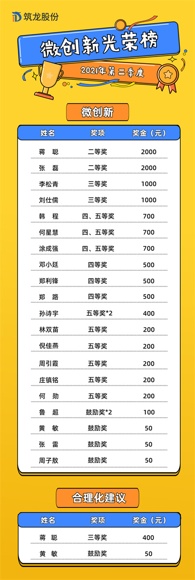 從陽春四月推出微創新活動,到五至七月正式開展,筑龍各板塊三十余名同學熱烈參與其中,他們輸出“金點子”,為公司經營管理的改進加足碼力。
