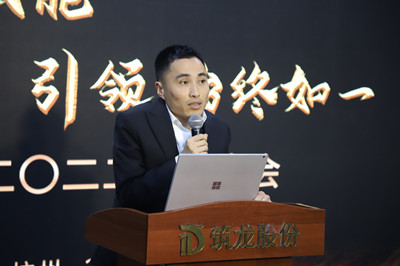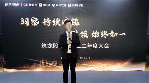 隨后,特邀嘉賓平安建設集團有限公司常務副總經理朱秀才發表講話。他表示,筑龍股份公司是一家年輕的企業,未來充滿無限可能。2022年,要立足于現階段行業與業務的內外部形勢,在新的征程中持續不斷完善人才儲備和培養機制,加大力度深化員工考核和期權激勵機制,集中精力做好項目研發及創新工作,希望按既定計劃成功上市。筑龍全體追夢人攜手并進,定能共赴成功的未來。