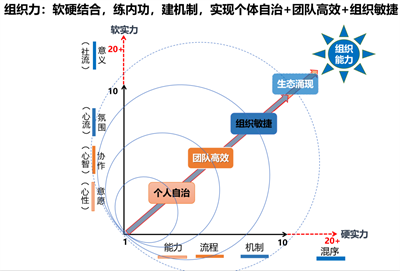 鍛造高效能團隊需要搭建完善的企業自運營體系來提升企業硬實力,同時也需要營造良好的場域能量、文化氛圍,提升員工心智,使其主動作用于組織健康。軟硬實力結合,兩者相得益彰,最終實現組織敏捷高效。