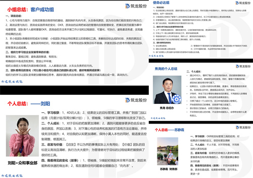 組織力打造項目持續6個月,陪伴并見證著筑龍管理團隊的成長和蛻變。他們堅持每天寫平衡報、做領袖操和5I操,把優秀變成習慣。他們開始向內覺察,向內尋找答案。他們學會更好地聆聽與反饋,越來越關注員工心智成長,越來越注重追過程、拿結果能力的提升。組織力打造系列課程,為筑龍打造了一支更加堅定、高效、突破的團隊,為筑龍實現美好愿景提供組織保障!