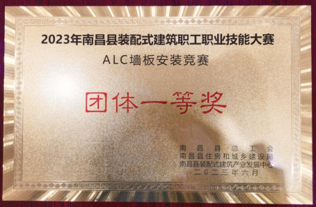 6月2日,由南昌縣總工會、南昌縣住房和城鄉建設局、南昌縣裝配式建筑產業發展中心主辦,南昌縣裝配式建筑產業聯盟承辦的南昌縣裝配式建筑職工職業技能大賽落下帷幕。在鯤鵬裝配公司副總經理周沖、李獨際帶領下的鯤鵬裝配代表隊表現出色,獲得ALC墻板安裝競賽團體一等獎,預制構件(剪力墻)安裝競賽團體二等獎。