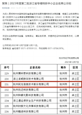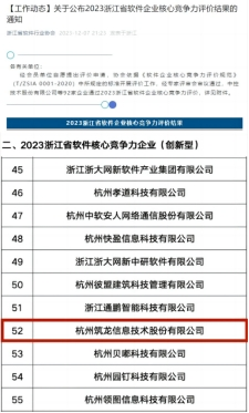 十二月,捷報頻傳!杭州筑龍信息技術(shù)股份有限公司成功獲評2023年度第二批浙江省專精特新中小企業(yè)、2023浙江省軟件核心競爭力企業(yè)(創(chuàng)新型)以及2022年度杭州高新區(qū)(濱江)瞪羚企業(yè)。