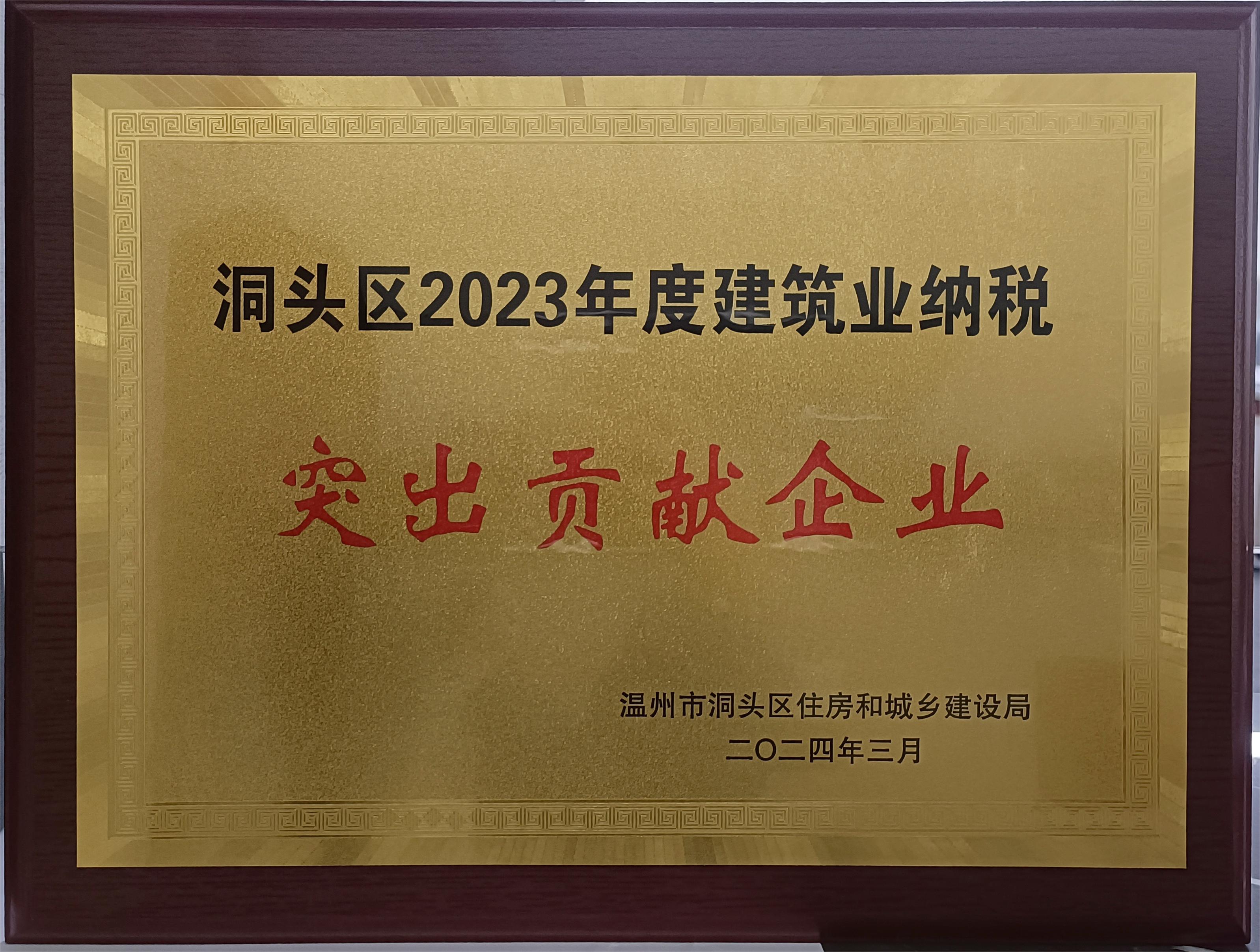 尚謙億建筑集團旗下子公司浙江尚謙藝建筑有限公司(以下簡稱“尚謙藝公司”)榮獲“洞頭區2023年度建筑業納稅突出貢獻企業”稱號。
