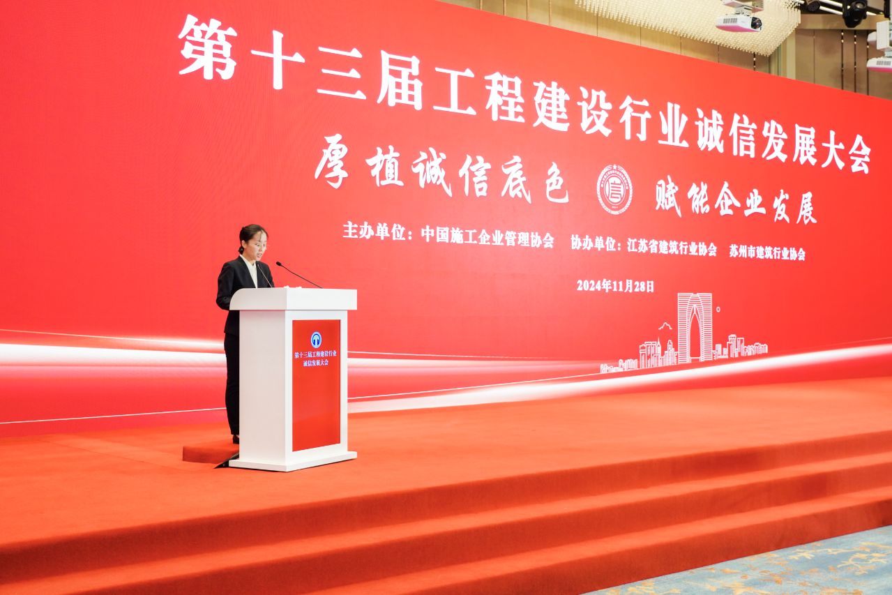 11月28日,由中國施工企業管理協會主辦,江蘇省建筑行業協會、蘇州市建筑行業協會協辦的第十三屆工程建設行業誠信發展大會在蘇州隆重召開。會議以“厚植誠信底色 賦能企業發展”為主題,吸引了各關聯協會領導,以及工程建設領域的誠信典型企業、誠信企業家等代表齊聚一堂,共同探討行業誠信建設與高質量發展路徑。筑龍股份建設通大數據研究院院長賈海峰受邀出席本次大會,并作主題演講。
